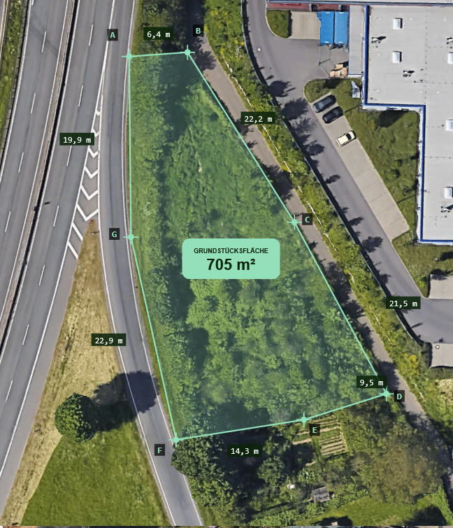 Mit unserer KI-gestützten Vermessungslösung lassen sich Planung, Kontrolle und Dokumentation im Handwerk und Bauwesen erheblich beschleunigen und präzisieren. In georeferenzierten Aufnahmen erkennt unsere KI automatisch neuralgische ortsfeste Punkte und ermittelt daraus relevante Distanzen und Volumina. Wir streben dabei eine Genauigkeit von unter 20 cm an und arbeiten an DIN 18710-konformen Messergebnissen.